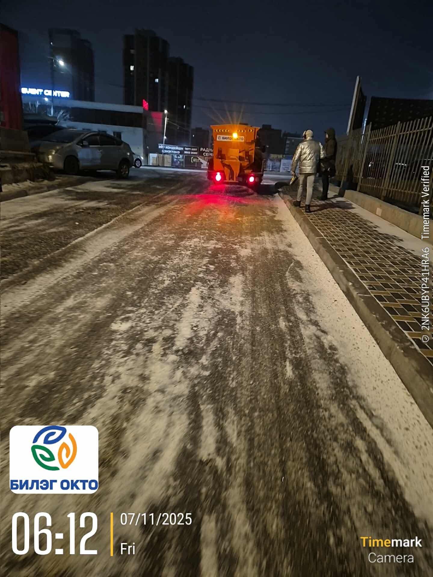 Халтиргаа гулгаа үүсэхээс урьдчилан сэргийлж, 15 тонн давс цацаад байна. Дүүргийн хэмжээнд 395 тонн бодис, 898.4 тонн давсны нөөцтэй байна.