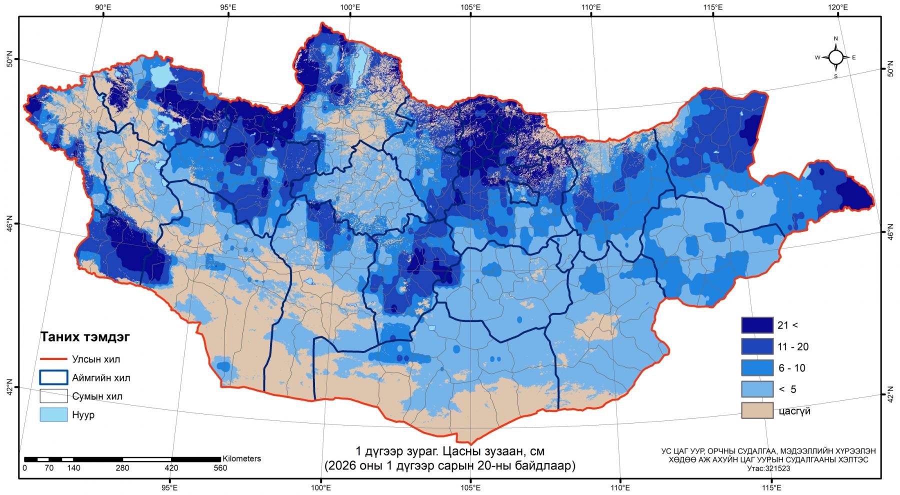 Хоёрдугаар сарын 21-ний өдрийн байдлаар манай орны ихэнх гол мөрөн, нуурын мөсний зузаан өмнөх арав хоногоос 5-25 см нэмэгдэж, 20-175 см зузаан мөсөн бүрхүүлтэй болжээ.