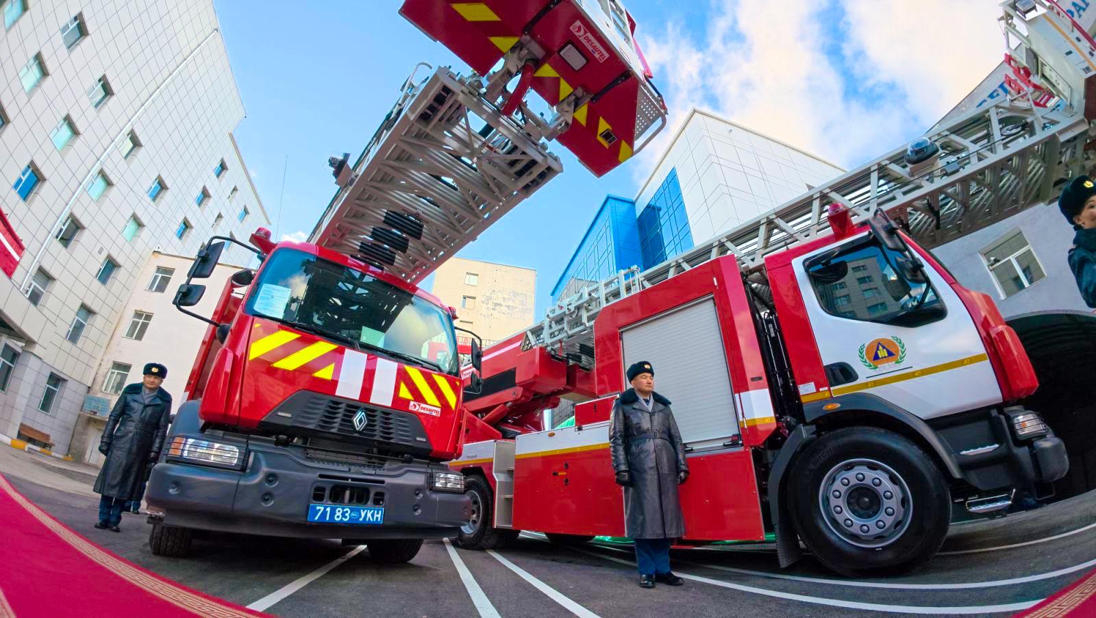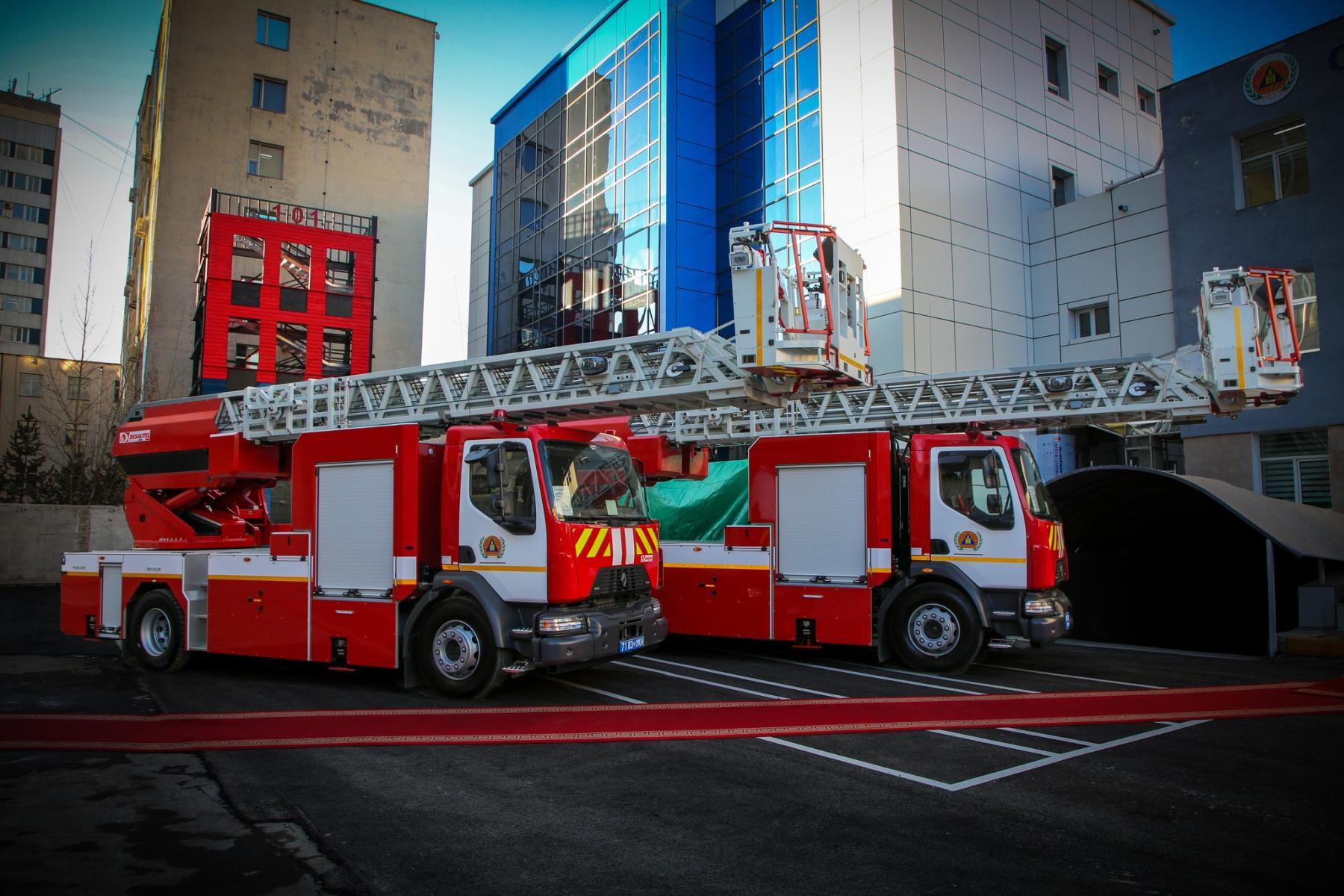 Монгол Улсын Засгийн газар, БНФУ-ын Засгийн газар хооронд байгуулсан санхүүгийн хэлэлцээрийн хүрээнд хэрэгжиж байгаа “Онцгой байдлын байгууллагын агаараас эрэн хайх, аврах ангийг чадавхжуулах, гал түймэр унтраах автомашин нийлүүлэх II шатны төсөл”-ийн эхний шатанд гал түймэр унтраах 42м урттай автомеханик шатны 2, 32м урттай автомеханик шатны 2 буюу нийт 4 автомашин нийлүүлэгдээд байна.
